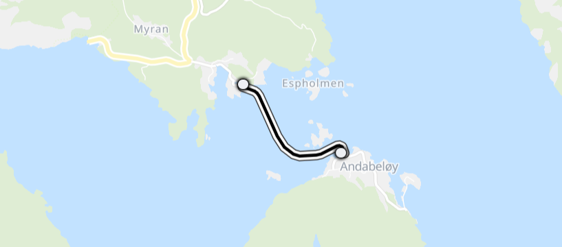 Er du klar for en lynrask tur over vannet som knapt gir deg tid til å knyte skoene? Da bør du bli kjent med Abelnes-Andabeløy-fergen, en del av rute 497, som betjenes av Boreal med den pålitelige MF Lafjord. Med en reisetid på bare 7 minutter, er dette en av de raskeste fergerutene du kan finne. Det betyr også at det er et stort antall avganger i begge retninger med få minutters mellomrom.